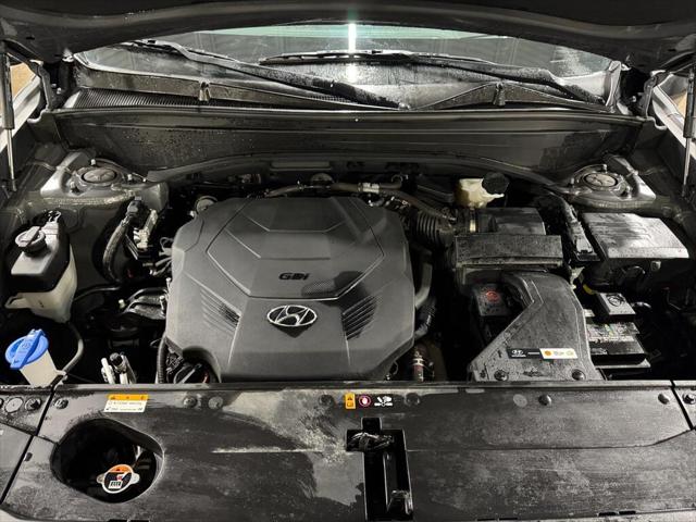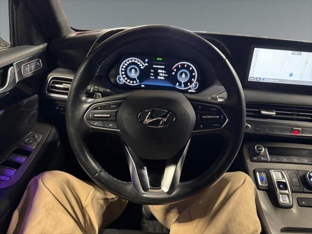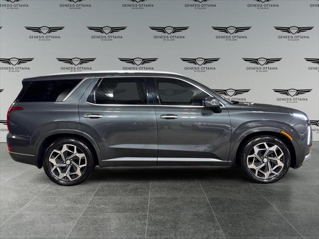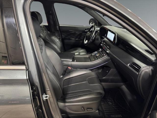 Introducing the 2021 Hyundai Palisade Ultimate Calligraphy a gray AWD SUV that exudes confidence and excellent handling. With its seamless automatic transmission paired with a robust 3.8L 6-cylinder engine this vehicle promises both power and smoothness on every journey. The exterior boasts stunning alloy wheels and a sophisticated silhouette perfect for the modern driver. Inside the black leather seats offer unparalleled comfort alongside a premium leather steering wheel while both heated and cooled seats ensure year-round enjoyment. Plus with seating for seven the whole family can travel in style and comfort. Stay connected and safe with cutting-edge technology that includes a heads-up display navigation system and smart device integration. Safety is at the forefront with lane assist parking sensors and a robust backup camera. Enhance every drive with extras like a sunroof/moonroof adaptive cruise control and remote start for the ultimate convenience. Ideal for families or those who crave both luxury and utility the Hyundai Palisade Ultimate Calligraphy is calling you to embark on new adventures. Contact our dealership for more information and elevate your driving experience today!