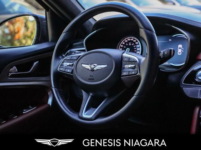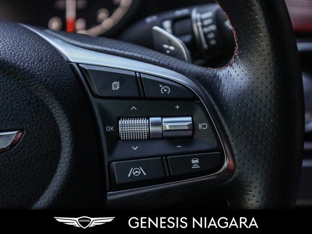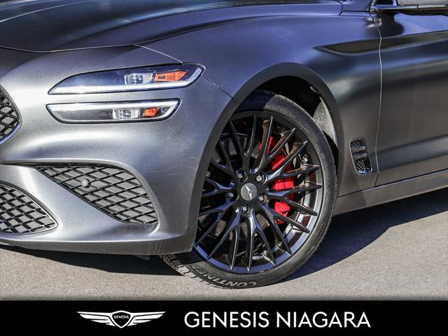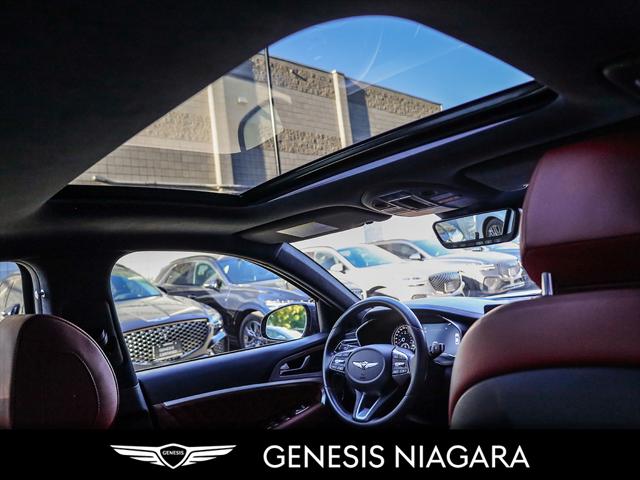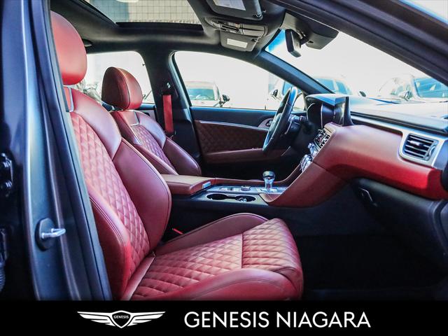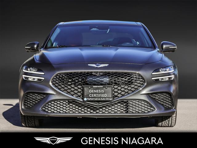 The 2022 G70 Sport Launch Edition was a limited production to ''launch'' the changes to the G70 for 2022. Only 30 of these were brought to Canada. This example was sold buy us and has no come back looking for a new owner. Here is a list of features this car has. - Front and Rear parking assistance sensors - Rain-sensing wipers - Power-folding auto-dimming heated side mirrors with Genesis logo puddle lamps - Power tilt-and-telescopic steering column - Drivers Integrated Memory System + Power Driver and Passenger seat adjustment - Ventilated front seats - Wireless charging pad - 15-speaker Lexicon surround sound audio system - Dual exhaust system with oval outlets - 16-way Power Driver Seat including Power Side Bolster & Cushion Extension - Head-Up Display (HUD) - 3.3L twin-turbocharged V6 engine with 365hp and 376 lb. ft. of torque - Variable Gear Ratio (VGR) steering rack - Sport-tuned Electronically Control Suspension - Limited Slip Differential (LSD) - Brembo braking system - Nappa leather seating surfaces with sport quilting - Microfibre suede headliner - Sport 19'' aluminum alloy wheels with high-performance summer tires - Alloy pedals - Variable Exhaust Valve - Surround view monitor with Blind Spot View Monitor - Front passenger seat walk-in device - Acoustic Laminated Glass (Front) We are confident your shopping experience with us will be a luxury experience with our ''no pressure'' sales team who are here to help you make the right choice. We are conveniently located at 342 Ontario Street in St.Catharines right off the QEW. We look forward to having you here and experiencing the Genesis difference. **Free Carproof online! Specialist onsite for all credit approvals!*