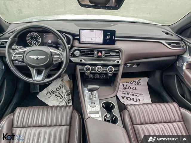 2022 Genesis G70 Advanced Locally Driven Certified One OwnerDiscover refined luxury and exhilarating performance in this 2022 Genesis G70 Advanced with only 28 000 km. Locally owned and driven this sedan has been certified inspected and meticulously maintained offering peace of mind and outstanding value.With its sleek design driver-focused interior and advanced technology features the G70 delivers a premium driving experience every time you take the wheel. The one-owner history ensures it has been cared for to the highest standard making it an excellent choice for those seeking both sophistication and reliability.Features & Highlights2.0L Turbocharged Engine smooth power with confident accelerationLuxury Interior premium leather seating and refined finishesAdvanced Safety Suite including Blind Spot Detection Forward Collision-Avoidance Assist and Lane Keeping AssistInfotainment System 8-inch touchscreen with Apple CarPlay & Android AutoHeated Front Seats & Steering Wheel year-round comfortDual-Zone Climate Control personalized cabin environmentSmart Key with Push Button Start convenience at your fingertipsAvailable now at Genesis Victoria this G70 Advanced blends performance luxury and peace of mind in a way only Genesis can deliver.