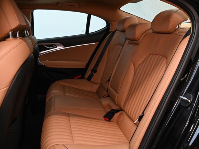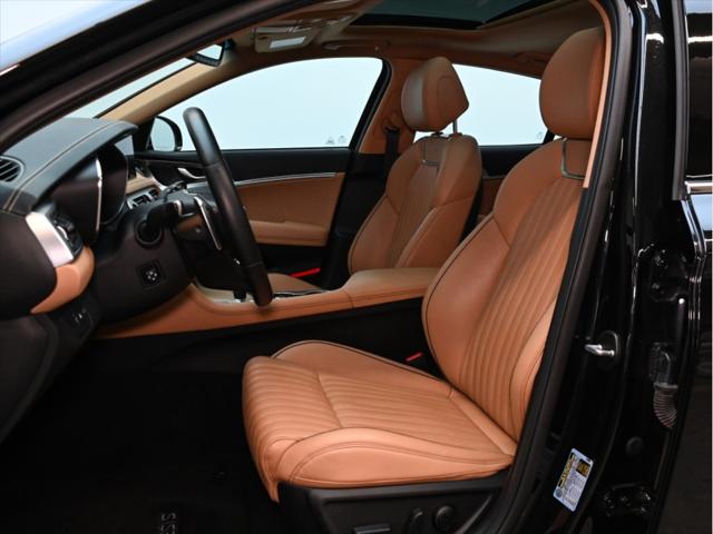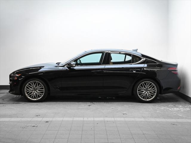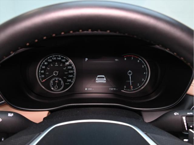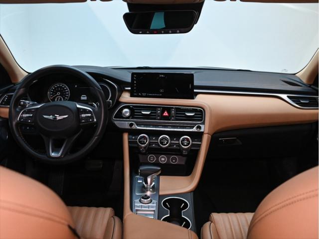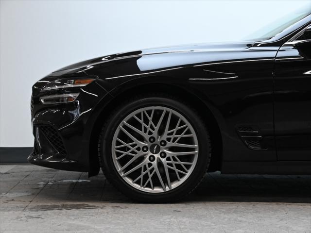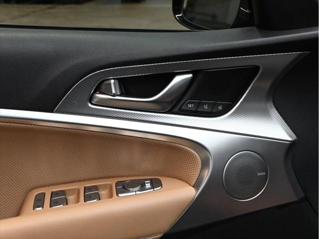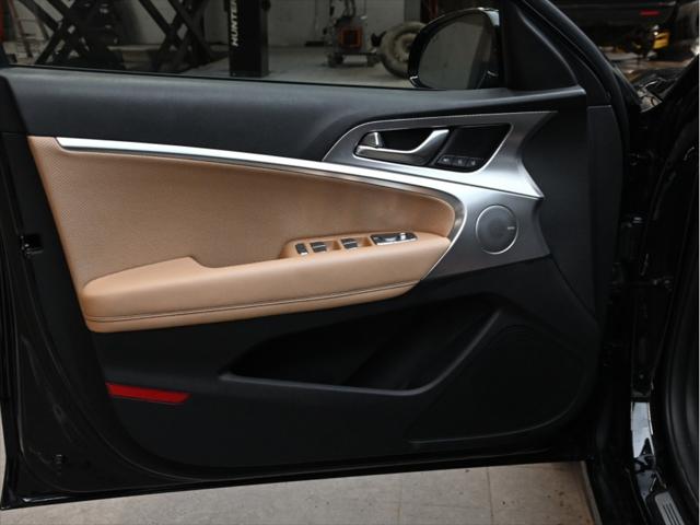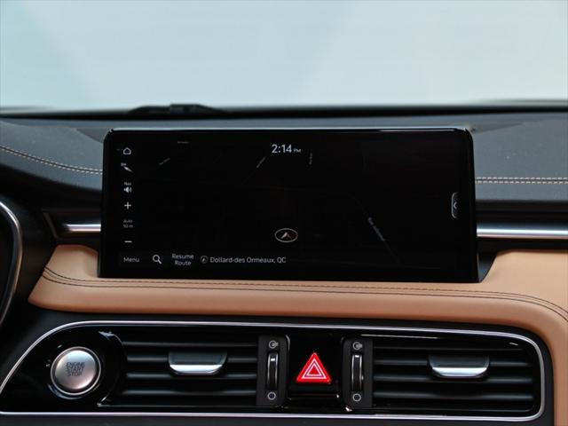 Moteur 4 cylindres 2 0 L turbocompressé 252 chevaux 260 lb-pi de couple Transmission automatique à 8 rapports Traction intégrale (AWD) Sélecteur de modes de conduite (Eco / Confort / Sport / Intelligent) Consommation (approximative) Ville : 11 0 L/100 km Route : 8 1 L/100 km Caractéristiques extérieures Jantes en alliage de 19 po Phares à DEL et feux de jour à DEL Feux arrière à DEL Rétroviseurs extérieurs chauffants à rabattement électrique Coffre intelligent mains libres Toit ouvrant électrique Garnitures extérieures chromées Intérieur et confort Sièges en cuir Sièges avant chauffants et ventilés Volant chauffant Sièges avant à réglages électriques avec mémoire côté conducteur Climatisation automatique à deux zones Garnitures intérieures en aluminium Éclairage dambiance Technologie et multimédia Écran tactile de 10 25 po Système de navigation Apple CarPlay et Android Auto™ Services connectés Genesis Recharge sans fil pour téléphone intelligent Système audio haut de gamme Lexicon Tableau de bord numérique Sécurité et aides à la conduite Assistance à lévitement de collision frontale Assistance à lévitement de collision dans les angles morts Alerte de trafic transversal arrière avec freinage Assistance au maintien et au suivi de voie Alerte dattention du conducteur Régulateur de vitesse adaptatif avec fonction arrêt/démarrage Caméra de recul Capteurs de stationnement avant et arrière