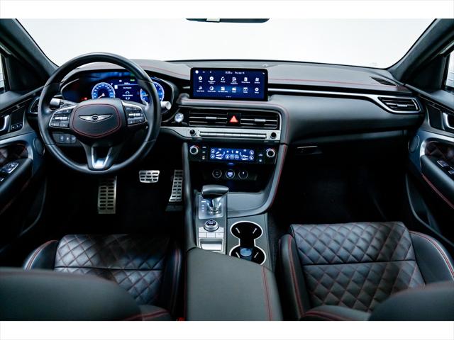GENESIS G70 3.3T SPORT 2025 Moteur V6 biturbo 3.3 L Transmission intégrale (AWD) Boîte automatique à 8 rapports avec palettes au volant Différentiel à glissement limité Suspension sport adaptative Jantes en alliage sport Échappement sport Sièges sport en cuir Nappa Sièges avant chauffants et ventilés Volant chauffant Système multimédia avec écran tactile Apple CarPlay et Android Auto Système audio haut de gamme Caméra de recul Aide au maintien de voie Régulateur de vitesse adaptatif Surveillance des angles morts Toit ouvrant électrique Dès les premiers instants la puissance impressionnante et la précision de conduite définissent une expérience résolument sportive et raffinée. La berline se distingue par une motorisation V6 biturbo qui délivre des accélérations franches et une réponse immédiate idéale pour les conducteurs recherchant des sensations fortes sans compromettre le confort. La tenue de route est optimisée grâce à une transmission intégrale intelligente et une suspension calibrée pour offrir un équilibre remarquable entre dynamisme et stabilité. Lhabitacle met de lavant une finition haut de gamme avec des matériaux nobles et une ergonomie pensée pour le conducteur. Les sièges en cuir Nappa assurent un maintien supérieur tandis que les technologies embarquées facilitent chaque trajet que ce soit pour les déplacements quotidiens ou les longues distances. Le système multimédia intuitif et la connectivité avancée permettent de rester branché en toute simplicité. Sur le plan de la sécurité plusieurs aides à la conduite viennent renforcer la confiance au volant. Le régulateur de vitesse adaptatif lassistance au maintien de voie et la surveillance des angles morts contribuent à une conduite plus sereine et sécurisée. En résumé cette berline sportive combine élégance performance et innovation dans un ensemble cohérent et distinctif. Venez découvrir par vous-même tout son potentiel et prenez le volant dès aujourdhui chez Brossard Hyundai. Toujours vérifier lexactitude des équipements auprès du représentant chez Brossard Hyundai. GENESIS G70 3.3T SPORT 2025 3.3L twin-turbo V6 engine All-wheel drive (AWD) 8-speed automatic transmission with paddle shifters Limited-slip differential Adaptive sport suspension Sport alloy wheels Sport exhaust system Nappa leather sport seats Heated and ventilated front seats Heated steering wheel Touchscreen multimedia system Apple CarPlay and Android Auto Premium audio system Rearview camera Lane keeping assist Adaptive cruise control Blind-spot monitoring Power sunroof From the very first moment its striking power delivery and sharp handling establish a truly engaging and refined driving experience. This sport sedan stands out with its twin-turbo V6 engine delivering strong acceleration and immediate throttle response perfectly suited for drivers who demand performance without sacrificing comfort. Its all-wheel drive system and finely tuned suspension provide excellent grip and balance ensuring confidence in a wide range of driving conditions. Inside the cabin showcases premium craftsmanship with high-quality materials and a driver-focused layout. Nappa leather seats offer exceptional support while advanced technology enhances convenience and connectivity. The intuitive infotainment system integrates seamlessly with your devices making every journey more enjoyable and efficient. Safety is also a key strength with a suite of advanced driver assistance features designed to support and protect. Adaptive cruise control lane keeping assist and blind-spot monitoring work together to provide added peace of mind on every drive. Overall this sport sedan delivers a compelling blend of luxury performance and cutting-edge technology. Experience it for yourself and take it for a test drive today at Brossard Hyundai. Always verify equipment details with a representative at Brossard Hyundai. *Concessionnaire Hyundai de premier rang dans la région de Montréal *Fondé en 1997 et en croissance continue depuis. *Service à la clientèle de qualité offrant réparation et entretien. *Inventaire complet de véhicules neufs et usagés. *Valeur des véhicules d'échange attrayante. *Facilité de financement grâce au service des finances. *Service après-vente comprenant pièces et réparation. *Dessert une large région incluant Brossard La Prairie Montréal etc. *Personnel dévoué et techniciens chevronnés pour une expérience d'achat agréable et avantageuse. *Le présent site utilise un générateur d'équipements caractéristiques et spécifications techniques automatisée basée sur des listes fournies par différentes sources publiques pour ce type de véhicule. Ces informations sont à titre indicatif seulement et ne doivent sous aucun prétexte être considérées comme étant la fiche technique officielle du véhicule concerné dans cette annonce. Veuillez confirmer la liste des équipements options et inclusions avec le concessionnaire vendeur car celles-ci peuvent différer. *This site uses an automated generator of equipment characteristics and technical specifications based on lists provided by various public sources for this type of vehicle. This information is for guidance only and should not be relied upon as the official specification sheet for the vehicle featured in this advert. Please confirm the list of equipment options and inclusions with the selling dealer as these may differ.