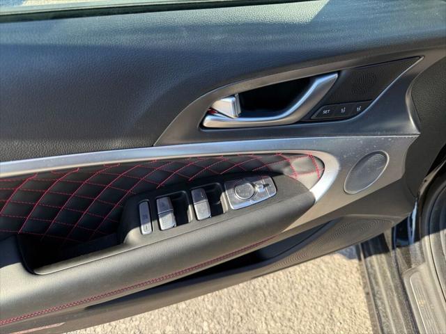 The 2025 Genesis G70 3.3T Sport AWD in black is designed for the driving enthusiast. Its sophisticated AWD drivetrain ensures a perfect blend of control and agility in any circumstance making every ride as smooth as it is exhilarating. The sedan's striking black exterior is accentuated by stylish alloy wheels and a sunroof that invites natural light into the cabin. Inside the black interior with leather seats and leather accents creates a realm of luxury complete with a leather steering wheel and gear shifter for a premium feel. Heated and cooled seats provide comfort regardless of the season while features such as remote start and keyless entry add to the ultimate driving convenience. Technological innovation shines with this model equipped with a cutting-edge navigation system a robust infotainment setup including Bluetooth connectivity and smart device integration. Stay safe and confident on the road with the comprehensive suite of standard safety features including lane assist brake assist and parking sensors. Adaptive cruise control and a heads-up display further enhance your driving experience keeping essential information within your line of sight. Perfectly suited for professionals and families alike this Genesis G70 offers a harmonious blend of performance style and technology. Contact our dealership today to schedule a test drive and experience this remarkable vehicle's unparalleled excellence for yourself.
