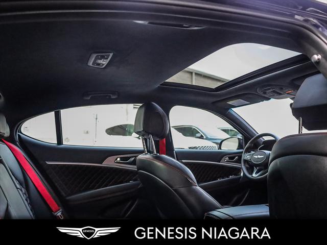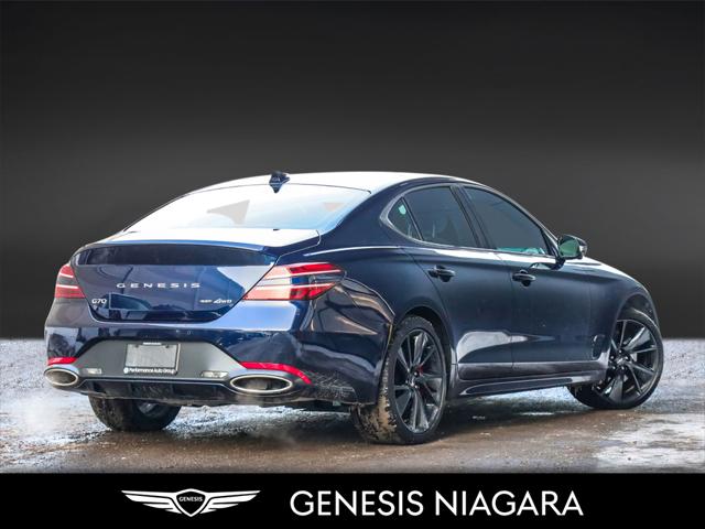 This 2023 G70 3.3T represents great value in a sports sedan with plenty of power and features that include. - Front and Rear parking assistance sensors - Rain-sensing wipers - Power-folding auto-dimming heated side mirrors with Genesis logo puddle lamps - Power tilt-and-telescopic steering column - Drivers Integrated Memory System + Power Driver and Passenger seat adjustment - Ventilated front seats heated rear seats - Wireless charging pad - 15-speaker Lexicon surround sound audio system - Dual exhaust system with oval outlets - 16-way Power Driver Seat including Power Side Bolster & Cushion Extension - Head-Up Display (HUD) - Power trunk lid - 3.3L twin-turbocharged V6 engine with 365hp and 376 lb. ft. of torque - Variable Gear Ratio (VGR) steering rack - Sport-tuned Electronically Control Suspension - Limited Slip Differential (LSD) - Brembo braking system - Nappa leather seating surfaces with sport quilting - Microfibre suede headliner - Sport 19'' aluminum alloy wheels with high-performance summer tires - Alloy pedals - Variable Exhaust Valve - Surround view monitor with Blind Spot View Monitor - Front passenger seat walk-in device - Acoustic Laminated Glass (Front) Q: Do you accept trade ins and is there a cost for an appraisal? Yes we accept trade ins of all makes and models. At Genesis Niagara your vehicle appraisal is completely complimentary. Our management team evaluates your vehicle using current market data condition history and demand to provide a competitive and transparent value. There is no obligation just clear information to help you make a confident decision. Q: I cannot come to the dealership right now but I need a trade value. What should I do? We understand that schedules can be busy. Simply contact our team by phone or email and provide your vehicle details including mileage and photos. We will provide a preliminary market estimate so you can move forward comfortably. When it is convenient for you we will confirm the value with a brief in person review. Q: My vehicle is not a Genesis. Can you still appraise it? Absolutely. We regularly appraise domestic import luxury SUV truck and sedan models of all brands. Our experience in the pre owned market allows us to confidently evaluate virtually any vehicle and provide a fair and competitive offer. Q: Why purchase from Genesis Niagara? Genesis Niagara is committed to delivering a refined transparent and customer focused buying experience for drivers across Ontario. Our 4.8 star Google rating reflects our dedication to exceptional service and professionalism at every step. We offer conveniences such as at home test drives and a straightforward pricing approach designed to make your purchase simple and comfortable. As part of Performance Auto Group one of Ontarios most established and trusted automotive groups you can purchase with added confidence knowing you are supported by a reputable organization with deep industry experience. We are proud supporters of charitable initiatives such as United Way and remain committed to giving back to the communities we serve. Our goal is simple. Provide honest guidance premium service and a purchasing experience that exceeds expectations. Experience the Genesis Difference at Genesis Niagara Refinement doesnt stop at performance; it extends to every aspect of your ownership journey. At Genesis Niagara every touchpoint is centred around you. From convenient at-home test drives and seamless online ordering to our transparent All-Inclusive One Price Promise every detail is designed to elevate your experience. Enjoy thoughtful ownership benefits like complimentary scheduled maintenance and valet service. Visit us today at 332 Ontario Street in St. Catharines right off the QEW. Performance Auto Group's mission is to make car buying easy. We are passionate about innovating so that your experience in any of our dealerships is quick and enjoyable. Youll enjoy working with our friendly teams who are always available to help you make an informed decision. Purchase confidently with our industry-leading transparency tools that provide unprecedented information about the history and condition of our cars. Drive with confidence knowing that we have the most rigorous inspection and reconditioning process in the country handled by our team of factory-trained technicians. We invite you to experience the difference - at Performance Auto Group.