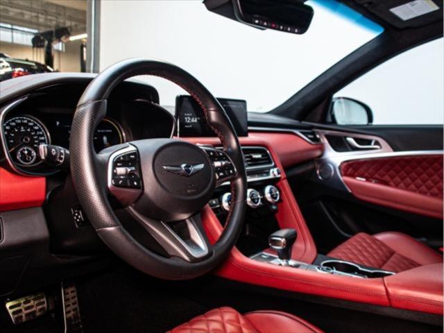Moteur et Performance Moteur V6 biturbo de 3 3 L à essence Puissance : 365 chevaux à 6 000 tr/min Couple : 376 lb-pi à 1 300–4 500 tr/min Transmission automatique à 8 rapports avec palettes au volant Traction intégrale (AWD) Suspension à commande électronique Freins haute performance Brembo Sélecteur de modes de conduite (Éco Confort Sport Sport+) Contrôle de départ (Launch Control) Consommation (estimée) Ville : 13 3 L/100 km Route : 9 7 L/100 km Combinée : 11 7 L/100 km Type de carburant : Super (essence premium) Éléments extérieurs Roues en alliage de 19 po (design sport) Phares et feux arrière quadruples à DEL Calandre sport avec fini chrome foncé Toit ouvrant électrique Coffre intelligent mains libres Rétroviseurs extérieurs chauffants et repliables électriquement Intérieur et confort Sellerie en cuir Nappa Siège du conducteur à 16 réglages électriques Siège du passager à 12 réglages électriques Sièges avant chauffants et ventilés Sièges arrière chauffants Volant chauffant Garnitures intérieures en aluminium Climatisation automatique à deux zones Éclairage dambiance intérieur Infodivertissement et connectivité Écran tactile de 10 25 po Navigation avec circulation en temps réel Apple CarPlayMC et Android AutoMC Système audio haut de gamme Lexicon à 15 haut-parleurs Chargeur sans fil pour téléphone intelligent Tableau de bord numérique 3D de 12 3 po Sécurité et aide à la conduite Assistance à la conduite sur autoroute Assistance à lévitement de collision dans les angles morts Assistance à la prévention de collision frontale (piéton cycliste intersection) Assistance à lévitement de collision transversale arrière Caméra à vue panoramique (360°) Régulateur de vitesse intelligent avec arrêt/démarrage Assistance au maintien et au suivi de voie Avertisseur de distance de stationnement (avant et arrière) Dimensions Longueur : 4 685 mm Largeur : 1 850 mm Hauteur : 1 400 mm Empattement : 2 835 mm Volume du coffre : 297 L
