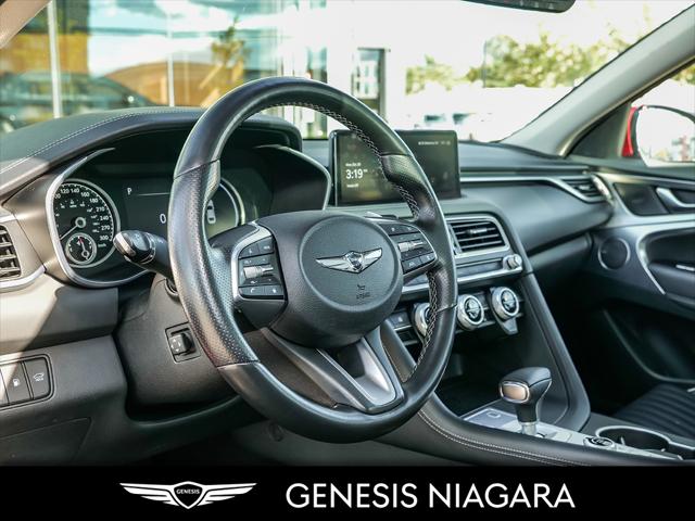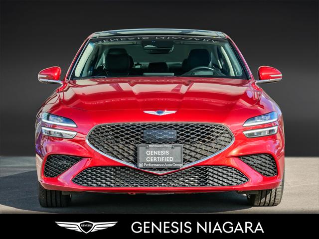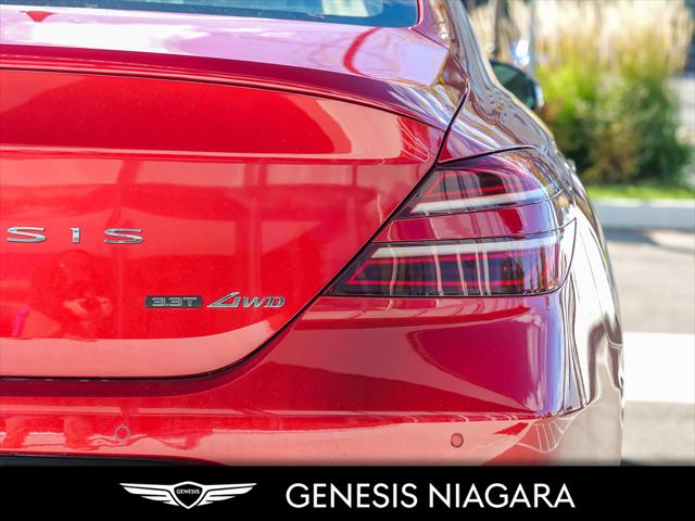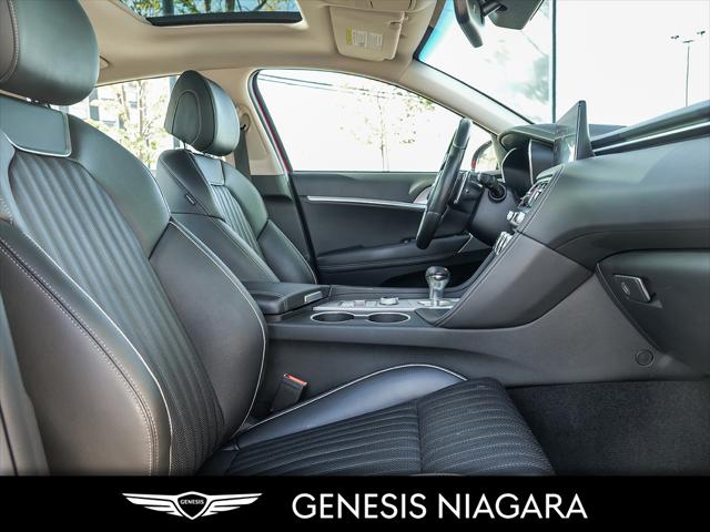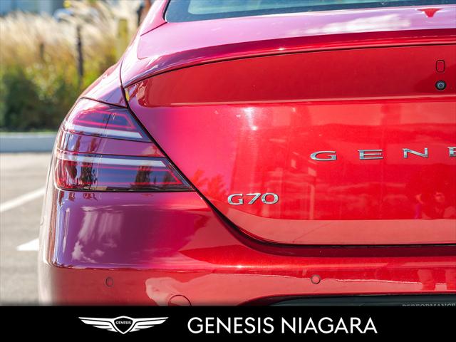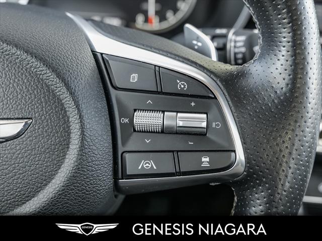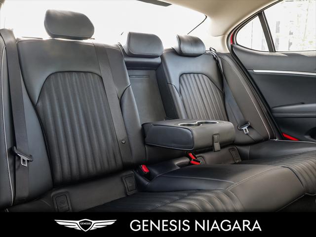 This 2022 G70 3.3T Advanced represents great value in a sports sedan with plenty of power and features that include. - Front and Rear parking assistance sensors - Rain-sensing wipers - Power-folding auto-dimming heated side mirrors with Genesis logo puddle lamps - Power tilt-and-telescopic steering column - Drivers Integrated Memory System + Power Driver and Passenger seat adjustment - Ventilated front seats heated rear seats - Wireless charging pad - 15-speaker Lexicon surround sound audio system - Dual exhaust system with oval outlets - 14-way Power Driver Seat - Power trunk lid - 3.3L twin-turbocharged V6 engine with 365hp and 376 lb. ft. of torque - Variable Gear Ratio (VGR) steering rack - Sport 19'' aluminum alloy wheels - Front passenger seat walk-in device - Acoustic Laminated Glass (Front) We are confident your shopping experience with us will be a luxury experience with our ''no pressure'' sales team who are here to help you make the right choice. We are conveniently located at 342 Ontario Street in St.Catharines right off the QEW. We look forward to having you here and experiencing the Genesis difference. **Free Carproof online! Specialist onsite for all credit approvals!*