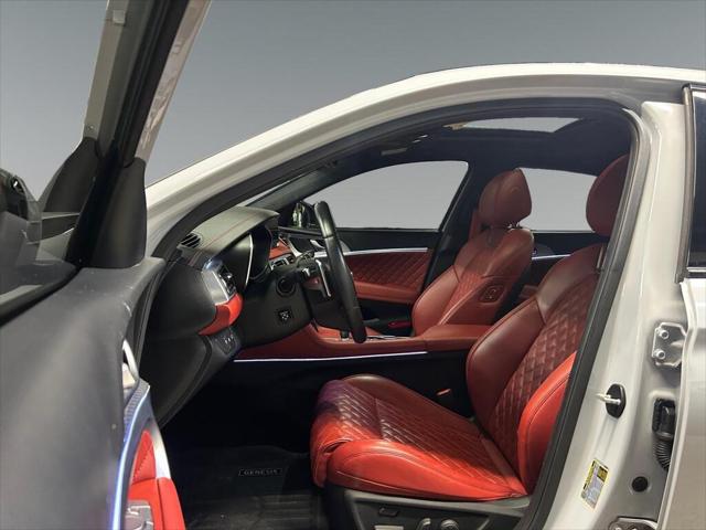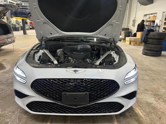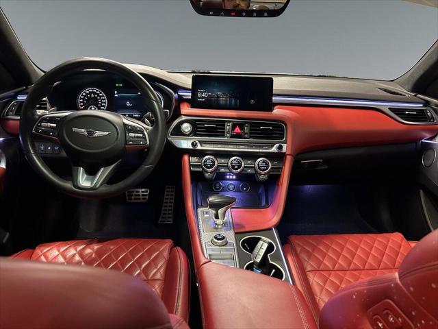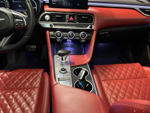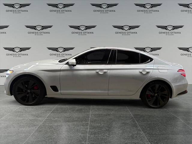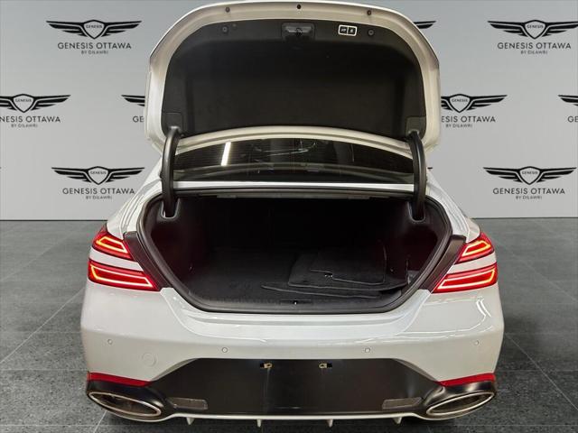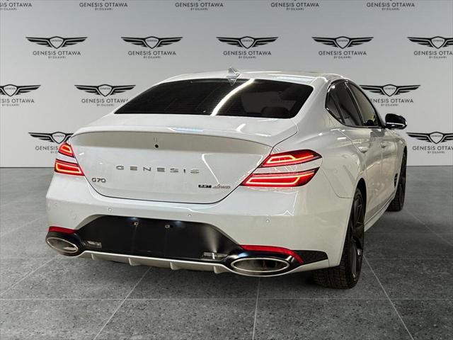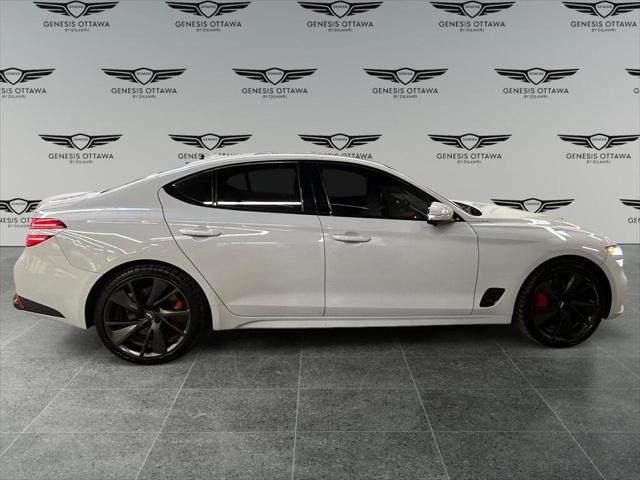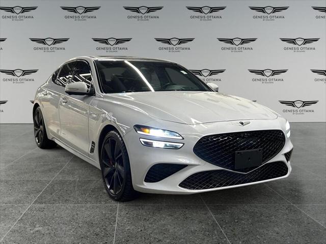 Experience the perfect blend of style and performance with the 2022 Genesis G70 3.3T Sport AWD in a sophisticated gray finish. This all-wheel-drive sedan offers exceptional handling that makes every drive a pleasure. The sleek exterior of the G70 is complemented by its stylish alloy wheels and distinctive body lines. Inside you'll find a beautifully appointed black leather interior that exudes luxury and comfort. The power seats and sunroof add a touch of elegance to your journey. Stay connected on the road with smart device integration a feature-rich navigation system and a heads-up display that keeps you informed. The G70 prioritizes your safety with a suite of features including a backup camera lane assist and parking sensors. Adaptive cruise control ensures a smooth assisted driving experience. Whether you're an executive seeking sophistication or a driving enthusiast looking for performance the Genesis G70 3.3T Sport AWD is designed to meet your needs. Contact us today to learn more about this stunning sedan and schedule your test drive.