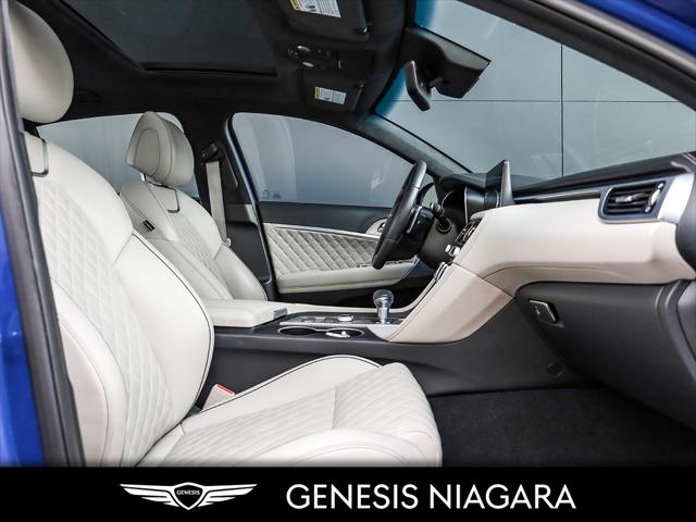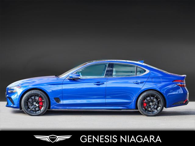 This 2023 G70 3.3T represents great value in a sports sedan with plenty of power and features that include. - Front and Rear parking assistance sensors - Rain-sensing wipers - Power-folding auto-dimming heated side mirrors with Genesis logo puddle lamps - Power tilt-and-telescopic steering column - Drivers Integrated Memory System + Power Driver and Passenger seat adjustment - Ventilated front seats heated rear seats - Wireless charging pad - 15-speaker Lexicon surround sound audio system - Dual exhaust system with oval outlets - 16-way Power Driver Seat including Power Side Bolster & Cushion Extension - Head-Up Display (HUD) - Power trunk lid - 3.3L twin-turbocharged V6 engine with 365hp and 376 lb. ft. of torque - Variable Gear Ratio (VGR) steering rack - Sport-tuned Electronically Control Suspension - Limited Slip Differential (LSD) - Brembo braking system - Nappa leather seating surfaces with sport quilting - Microfibre suede headliner - Sport 19'' aluminum alloy wheels with high-performance summer tires - Alloy pedals - Variable Exhaust Valve - Surround view monitor with Blind Spot View Monitor - Front passenger seat walk-in device - Acoustic Laminated Glass (Front) Q: Do you accept trade ins and is there a cost for an appraisal? Yes we accept trade ins of all makes and models. At Genesis Niagara your vehicle appraisal is completely complimentary. Our management team evaluates your vehicle using current market data condition history and demand to provide a competitive and transparent value. There is no obligation just clear information to help you make a confident decision. Q: I cannot come to the dealership right now but I need a trade value. What should I do? We understand that schedules can be busy. Simply contact our team by phone or email and provide your vehicle details including mileage and photos. We will provide a preliminary market estimate so you can move forward comfortably. When it is convenient for you we will confirm the value with a brief in person review. Q: My vehicle is not a Genesis. Can you still appraise it? Absolutely. We regularly appraise domestic import luxury SUV truck and sedan models of all brands. Our experience in the pre owned market allows us to confidently evaluate virtually any vehicle and provide a fair and competitive offer. Q: Why purchase from Genesis Niagara? Genesis Niagara is committed to delivering a refined transparent and customer focused buying experience for drivers across Ontario. Our 4.8 star Google rating reflects our dedication to exceptional service and professionalism at every step. We offer conveniences such as at home test drives and a straightforward pricing approach designed to make your purchase simple and comfortable. As part of Performance Auto Group one of Ontarios most established and trusted automotive groups you can purchase with added confidence knowing you are supported by a reputable organization with deep industry experience. We are proud supporters of charitable initiatives such as United Way and remain committed to giving back to the communities we serve. Our goal is simple. Provide honest guidance premium service and a purchasing experience that exceeds expectations. Experience the Genesis Difference at Genesis Niagara Refinement doesnt stop at performance; it extends to every aspect of your ownership journey. At Genesis Niagara every touchpoint is centred around you. From convenient at-home test drives and seamless online ordering to our transparent All-Inclusive One Price Promise every detail is designed to elevate your experience. Enjoy thoughtful ownership benefits like complimentary scheduled maintenance and valet service. Visit us today at 332 Ontario Street in St. Catharines right off the QEW. Performance Auto Group's mission is to make car buying easy. We are passionate about innovating so that your experience in any of our dealerships is quick and enjoyable. Youll enjoy working with our friendly teams who are always available to help you make an informed decision. Purchase confidently with our industry-leading transparency tools that provide unprecedented information about the history and condition of our cars. Drive with confidence knowing that we have the most rigorous inspection and reconditioning process in the country handled by our team of factory-trained technicians. We invite you to experience the difference - at Performance Auto Group.