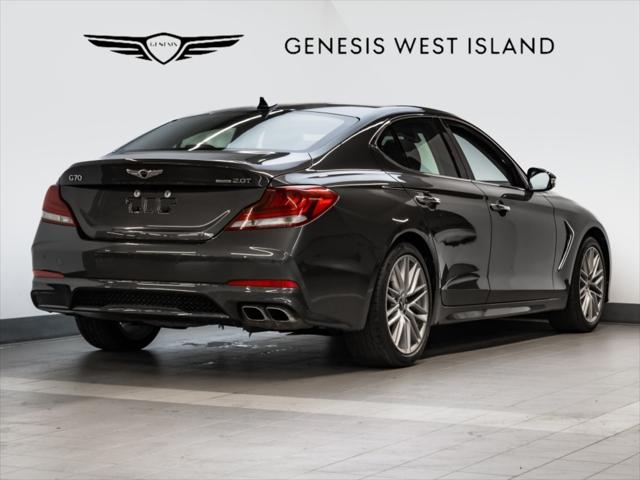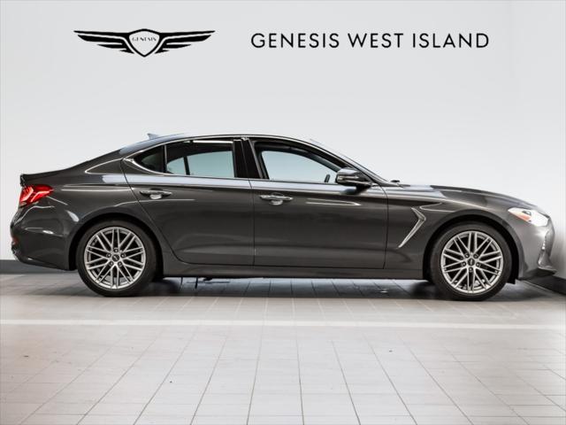 Moteur et Performance Moteur 4 cylindres turbo 2 0 L à essence Puissance : 252 ch à 6 200 tr/min Couple : 260 lb-pi entre 1 400 et 4 000 tr/min Transmission automatique à 8 rapports avec palettes de changement de vitesse Traction intégrale (AWD) de série au Canada Sélecteur de modes de conduite (Éco Confort Sport Personnalisé) Caractéristiques Extérieures Roues en alliage de 18 pouces Phares quadruples à DEL et feux de jour à DEL Feux arrière à DEL Rétroviseurs chauffants repliables électriquement avec clignotants intégrés Toit ouvrant (bascule et coulissant) Vitres avant acoustiques laminées Intérieur et Confort Sièges en cuir véritable Siège conducteur à réglage électrique 12 positions (incluant support lombaire) Sièges avant chauffants Volant chauffant Climatisation automatique bi-zone Garnitures intérieures en aluminium Colonne de direction inclinable et télescopique à commande électrique Technologie et Infodivertissement Écran tactile HD de 10 25 pouces Apple CarPlayMC et Android AutoMC (filaire) Système audio à 6 haut-parleurs Système de navigation intégré BluetoothMD mains libres avec diffusion audio Plateau de recharge sans fil Services connectés Genesis (abonnement de 5 ans) Sécurité et Aide à la Conduite Assistance à lévitement de collisions frontales Assistance à lévitement de collision dans les angles morts Assistance à lévitement de collision transversale arrière Assistance au maintien et au suivi de voie Régulateur de vitesse intelligent avec arrêt/départ automatique Alerte de vigilance du conducteur Avertisseur de distance de stationnement (avant et arrière) 10 coussins gonflables