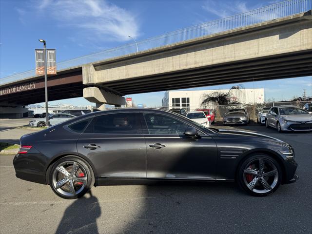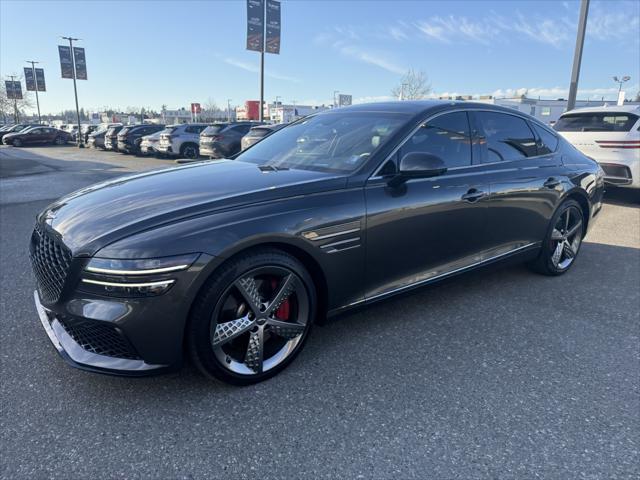 Recent Arrival! 2023 Genesis G80 3.5T Makalu GrayOdometer is 27692 kilometers below market average!At Genesis Langley we're happy to bring any of our new pre-owned or ex-demo vehicles right to your door with our Genesis Langley at home test-drive service!