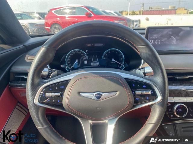 Discover refined luxury and confidence in this 2024 Genesis G80. Locally driven with just 19 000 km this executive sedan has been professionally maintained certified inspected and meticulously cared for. To add even greater value it includes complimentary maintenance up to 100 000 km ensuring peace of mind and worry-free ownership. This G80 has also never been smoked in preserving a clean and fresh interior.Step inside and enjoy premium comfort and cutting-edge technology including:Leather seating with heated and ventilated front seats for year-round comfortAdvanced safety features such as Blind-Spot Collision Avoidance Lane Keeping Assist and Smart Cruise ControlSurround View Monitor and Parking Sensors for effortless maneuvering12.3 infotainment display with navigation Apple CarPlay & Android AutoPremium audio system delivering rich sound qualityPanoramic sunroof to brighten every driveOn the road the Genesis G80 blends smooth performance with confident handling creating a driving experience that is both dynamic and refined.This rare combination of low mileage complimentary long-term maintenance and luxury features makes this G80 an outstanding choice for discerning drivers available now at Genesis Victoria.