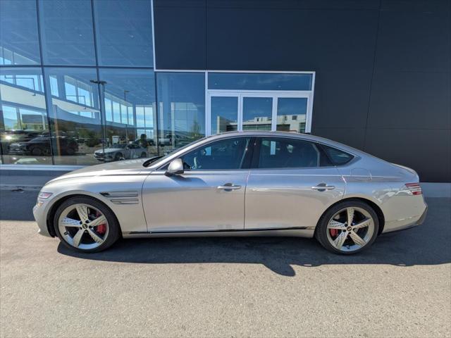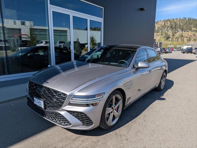 Experience refined power and premium comfort in this 2026 Genesis G80 3.5t Sport Demo at Genesis Kelowna. Finished in Grey with a Black interior this luxury sedan delivers confident performance from its 3.5-litre DOHC D-CVVT twin-turbo GDI+MPI engine and smooth 8-speed automatic transmission with paddle shifters. With only 8 128 km this demo is considered like new and offers an excellent chance to enjoy advanced Genesis engineering with exceptional value. The 2026 Genesis G80 3.5t Sport brings athletic response elegant design and a quiet composed drive that suits daily commuting and long highway travel around Kelowna. FEATURES OF THE G80 3.5t Sport »» Twin-turbo 3.5-litre V6 power delivery »» Eight-speed automatic with paddle shifters »» Sport-focused luxury sedan driving character »» Grey exterior with Black interior ADVANCED SAFETY FEATURES »» Strong body structure supports occupant protection »» Advanced driver assistance features may vary »» Wide stance helps steady road manners »» Genesis engineering emphasizes confident everyday driving PERFORMANCE AND EFFICIENCY »» 3.5-litre twin-turbo engine delivers strong acceleration »» Eight-speed automatic supports smooth gear changes »» Paddle shifters add more driver control »» Idle stop system helps reduce fuel use COMFORT AND CONVENIENCE »» Spacious sedan cabin for daily comfort »» Demo condition offers like-new ownership appeal »» Black interior creates a premium atmosphere »» Quiet ride suits city and highway TECHNONOLGY AND CONNECTIVITY »» Paddle shifters enhance interactive driving feel »» Clear driver-focused layout supports easy operation »» Modern Genesis cabin design feels intuitive »» Premium sedan engineering supports everyday usability CARGO SPACE »» Sedan trunk suits luggage and errands »» Rear cargo area supports daily needs »» Useful space for shopping or travel »» Wide opening aids easier loading WHAT OTHER OWNERS LIKE »» Strong twin-turbo acceleration feels effortless »» Smooth ride with solid highway comfort »» Upscale cabin ambience feels refined »» Balanced luxury and sport character This 2026 Genesis G80 3.5t Sport's VIN is: KMTGB4SD4TU306357.