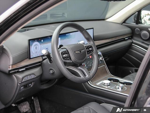 Discover the epitome of sophistication in the used 2025 Genesis GV80 Prestige a vehicle designed for those who appreciate the finer things in life. This SUV seamlessly combines luxury with practicality ideal for the discerning driver who values both style and substance. The exquisite Nappa leather interior exudes opulence while the spacious cabin comfortably accommodates seven passengers making it perfect for family adventures or executive travel. Indulge in the comfort of power heated and ventilated seating ensuring an optimal driving experience in any climate. The heated console adds an extra layer of warmth and convenience during those chilly Canadian winters. Stay connected and informed with the impressive 27-inch panoramic display offering a seamless interface for navigation and entertainment. The automatic transmission and all-wheel drive provide a smooth responsive ride effortlessly tackling diverse terrains. With its sleek black exterior and sophisticated design the GV80 Prestige commands attention on the road. This vehicle is more than just transportation it&apos s a statement of luxury and innovation tailored for those who demand excellence in every journey.