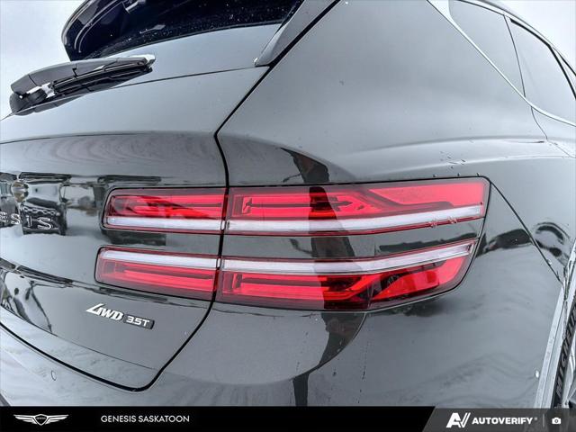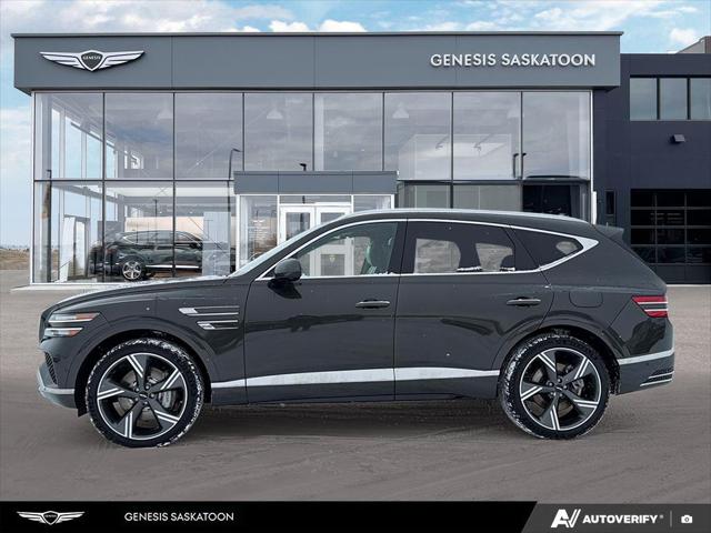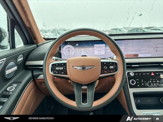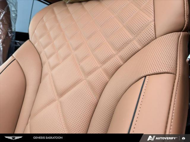Our GV80's trim level is 3.5T Prestige AWD 7P. The interior delivers exceptional luxury and versatility with leather seating surfaces across three rows including power-folding third-row seats and 12-way adjustable heated and ventilated front seats with lumbar support and a smart posture care system. A heated leather steering wheel genuine wood trim and ambient lighting create a refined atmosphere while the integrated 27-inch OLED display provides seamless access to navigation connected services and entertainment through a Bang & Olufsen 18-speaker audio system. Every passenger enjoys tailored comfort with multi-zone climate control rear sunblinds and ample space enhanced by meticulous craftsmanship. Advanced safety technologies like Highway Driving Assist II Blind-Spot Collision-Avoidance and an Aerial View Camera System combine with automatic remote parking and collision mitigation features to ensure confidence on every journey.