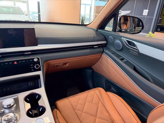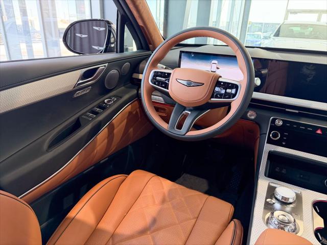 Our GV80's trim level is 3.5T Prestige AWD 7P. The interior delivers exceptional luxury and versatility with leather seating surfaces across three rows including power-folding third-row seats and 12-way adjustable heated and ventilated front seats with lumbar support and a smart posture care system. A heated leather steering wheel genuine wood trim and ambient lighting create a refined atmosphere while the integrated 27-inch OLED display provides seamless access to navigation connected services and entertainment through a Bang & Olufsen 18-speaker audio system. Every passenger enjoys tailored comfort with multi-zone climate control rear sunblinds and ample space enhanced by meticulous craftsmanship. Advanced safety technologies like Highway Driving Assist II Blind-Spot Collision-Avoidance and an Aerial View Camera System combine with automatic remote parking and collision mitigation features to ensure confidence on every journey. This vehicle has been upgraded with the following features: Soft Close Doors B&O Audio Cooled Seats HUD 360 Camera Sunroof Power Liftgate.
