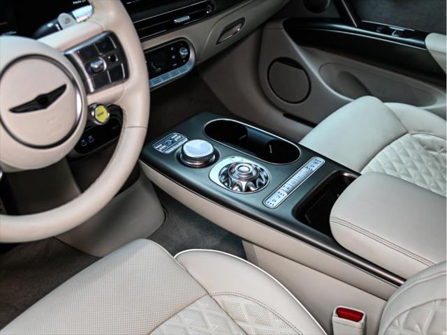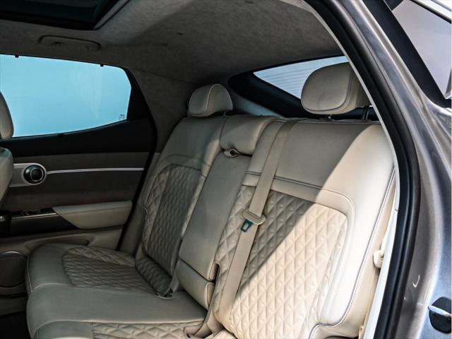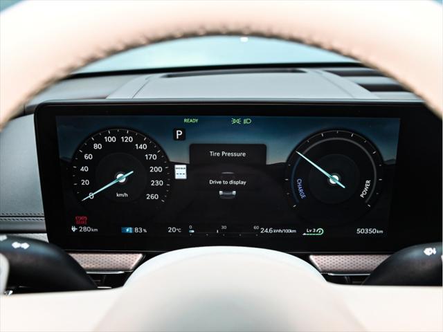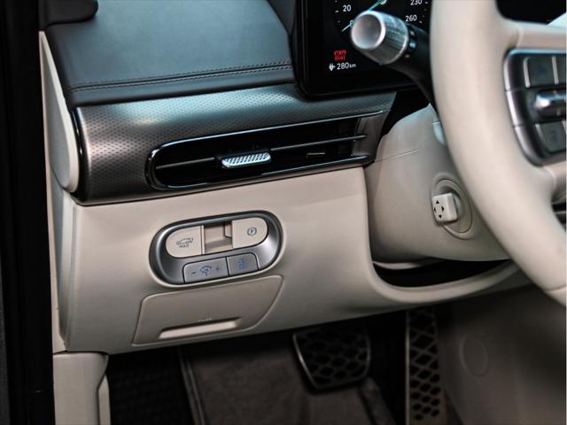 Performance et Groupe motopropulseur Deux moteurs électriques (avant 160 kW + arrière 160 kW) Puissance totale : 320 kW (429 ch) / jusquà 483 ch en mode Boost » Couple : 516 lb-pi Batterie : 77 4 kWh lithium-ion polymère Accélération (0–100 km/h) : env. 4 0 secondes (mode Boost) Modes de conduite : Éco / Confort / Sport / Sport+ / Boost Freinage régénératif avec mode i-Pedal Capacité de remorquage : 2 000 lb Recharge Système de recharge 800 V / 400 V Recharge rapide CC (10–80 %) : env. 18 minutes (borne 350 kW) Recharge niveau 2 (240 V) : env. 7 heures Fonction V2L (véhicule-vers-charge) : prise 120 V jusquà 3 6 kW Dimensions Longueur : 4 515 mm Largeur : 1 890 mm Hauteur : 1 580 mm Empattement : 2 900 mm Volume du coffre (sièges arrière relevés) : 680 L (incl. sous plancher) Roues et Pneus Jantes en alliage de 21 pouces Pneus : 255/40R21 Éléments extérieurs Phares à DEL adaptatifs Hayon intelligent mains libres Toit panoramique en verre Rétroviseurs numériques (caméra selon disponibilité) Grille à volets dair actifs Éléments intérieurs Sellerie en cuir Nappa Siège conducteur à réglage électrique 18 directions avec massage Sièges avant et arrière chauffants et ventilés Volant chauffant Éclairage dambiance à 64 couleurs Sphère de cristal pour le levier de vitesse électronique Technologie Tableau de bord numérique de 12 3 po Écran tactile central de 12 3 po Affichage tête haute à réalité augmentée (AR HUD) Système audio Bang & Olufsen (17 haut-parleurs) Apple CarPlay / Android Auto Chargeur sans fil pour téléphone Démarrage par empreinte digitale Système Face Connect » (reconnaissance faciale pour laccès) Sécurité et Aides à la conduite Assistance à la conduite sur autoroute II (HDA II) Régulateur de vitesse intelligent avec apprentissage automatique Caméra de vision dangle mort Caméra de vision 360° Assistance au stationnement intelligent à distance Aide à la prévention des collisions frontales Alerte de circulation transversale arrière avec freinage Aide à la sortie sécuritaire 10 coussins gonflables