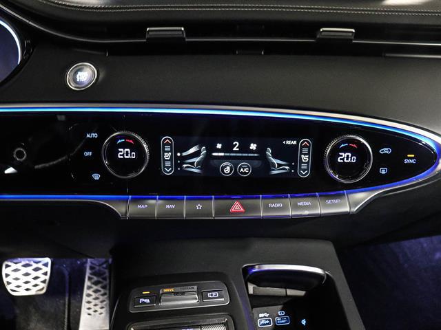 - Éclairage d'approche intégré aux rétroviseurs avec projection du logo « Genesis »