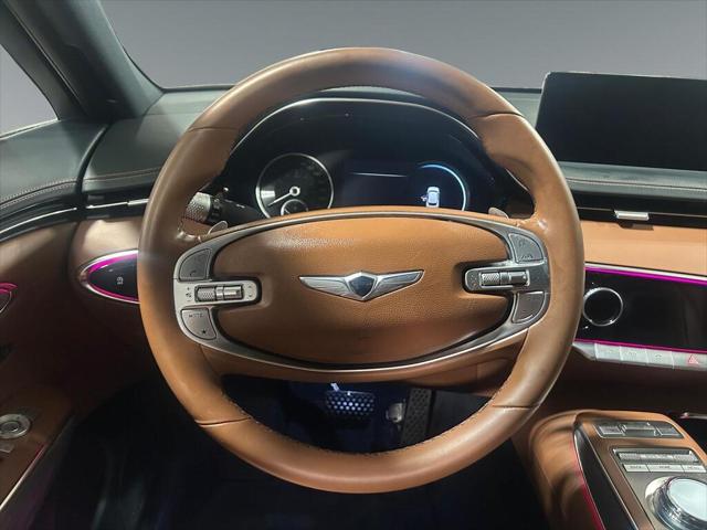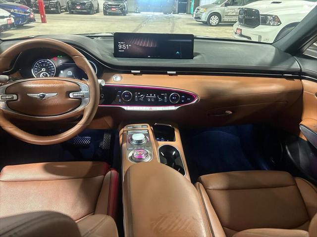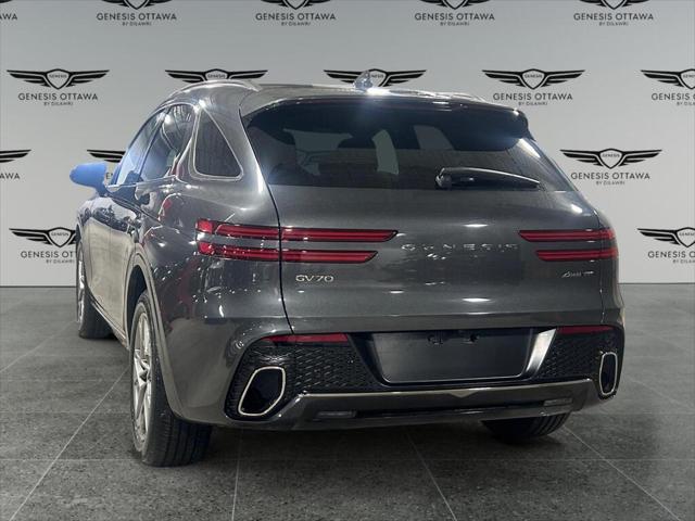 Introducing the stunning 2023 Genesis GV70 2.5T Advanced Plus AWD in a sleek gray finish perfectly combining exquisite style with all-wheel drive capability for outstanding handling. The exterior of the GV70 exudes a bold presence with its beautifully sculpted lines and premium alloy wheels. Step inside to a luxurious black interior where attention to detail is evident with heated and cooled leather seating a leather-wrapped steering wheel and aluminum trim accents. Stay connected and secure with advanced technology features such as the heads-up display navigation system and smart device integration. Safety is paramount with lane assist adaptive cruise control parking sensors and a backup camera ensuring peace of mind on every journey. Perfect for those seeking comfort and elegance in an SUV the Genesis GV70 is ready for your next adventure. Contact us today to learn more about this masterfully crafted vehicle and experience luxury at its finest.