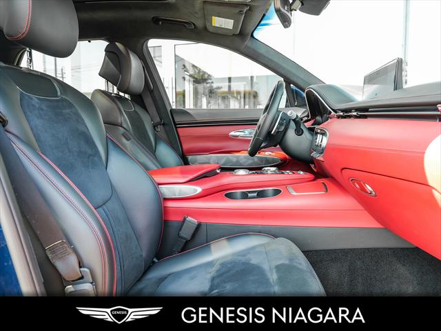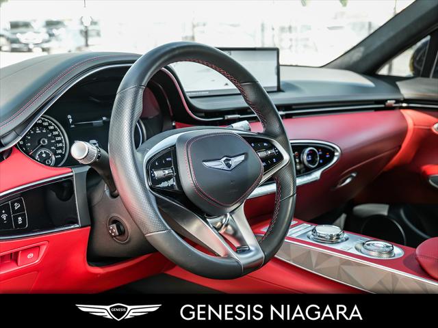 This 2023 GV70 2.5T Prestige is the top of the line trim package in the 2.5T Engine Option. This GV70 is powered by a 2.5 Liter Turbo 4 Cylinder that makes an incredible 300HP and 311ft.lb of torque. Its road presence is made recognizable by the 19'' beautiful alloy wheels with Michelin all-season tires that are equipped on this GV70. This vehicle is the definition of sport luxury with features such as a Massage Chair Nappa Leather with Suede Inserts Microfiber Suede Headliner 3 Spoke Sport Steering Wheel Dark Titanium Chrome trim/grille and Circular Dual Exhausts. If any of the above isn't enough to have you come see the beauty of this one of a kind SUV then hopefully all the equipped safety features such as the Blind Spot View Monitor Surround View Monitor Adaptive Cruise Control Highway Driving Assist Lane Keeping Assist Forward/Rear Collision Avoidance and even Remote Smart Parking Assist will be. We are confident your shopping experience with us will be a luxury experience with our ''no pressure'' sales team who are here to help you make the right choice. We are conveniently located at 332 Ontario Street in St.Catharines right off the QEW. We look forward to having you here and experiencing the Genesis difference. **Free Carproof online! Specialist onsite for all credit approvals!**