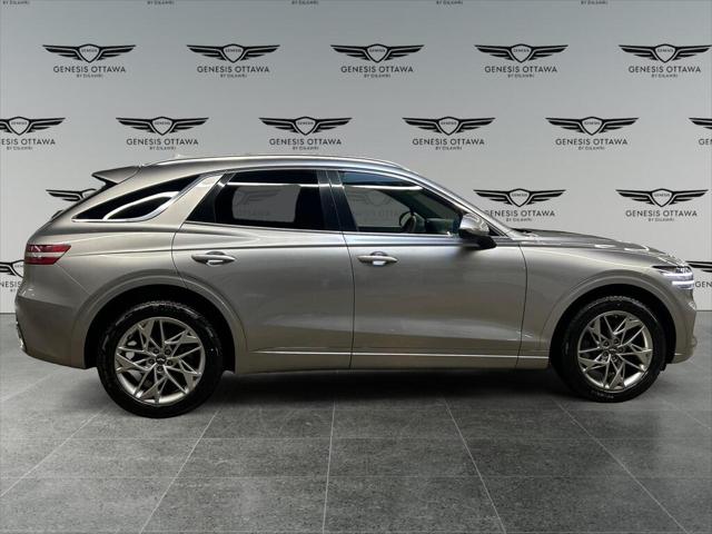 Introducing the 2022 Genesis GV70 2.5T Advanced a striking silver SUV that combines elegant style with the robust capability of its AWD drivetrain. With an automatic transmission this vehicle promises smooth handling and a responsive driving experience perfect for both city and countryside adventures. The Genesis GV70 exudes sophistication with its sleek silver exterior and a refined black interior offering an upscale ambiance enhanced by quality materials and craftsmanship. The SUV is equipped with alloy wheels and a signature grille that contribute to its distinctive presence on the road. Inside you'll find a suite of high-end features designed for comfort and convenience including premium leather seats heated and cooled front seats heated rear seats and a leather steering wheel. The advanced technology package offers a backup camera navigation system and smart device integration for a seamless driving experience while the sunroof lets in ample natural light. Safety is paramount in the GV70 with features such as brake assist parking sensors lane assist and adaptive cruise control providing peace of mind. The vehicle's keyless entry and remote start add to the convenience making it perfect for those on the go. Whether you're a busy professional or a family looking for a versatile SUV the Genesis GV70 2.5T Advanced has something for everyone. We invite you to contact us today for more details and to take this remarkable vehicle for a test drive.