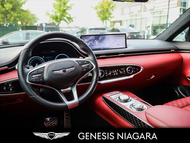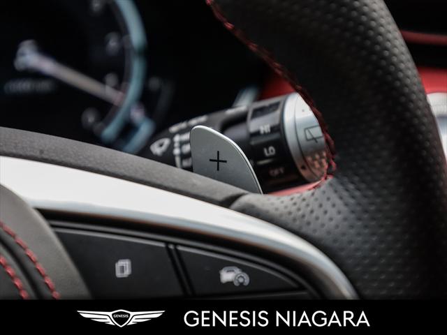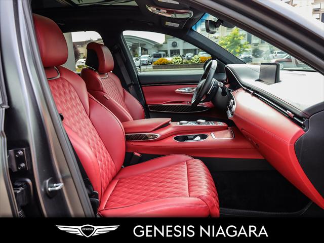 This 2023 GV70 3.5T Sport Plus is fully loaded with every possible option including a 12.3'' 3D TFT LCD digital instrument cluster. Its road presence is made recognizable by the 21'' Dark Sputtering alloy wheels with Michelin all-season tires that are equipped on this GV70. 3.5L twin-turbocharged V6 engine (375 hp 391 lb-ft torque) Electronic Control Suspension with Road Preview Lexicon Premium Audio with 16-Speakers Head-Up Display (HUD) 21'' aluminum alloy wheels (Sport) Sport Appearance - Unique front and rear facia with G Matrix pattern -Unique 21'''' aluminum alloy wheels -Large three dimensional air intake -Three dimensional skid plate pattern -Dark chrome unique front grill pattern -Blacked out grille surround bezel -U Microfibre suede headliner Nappa leather seating with suede Ergo Seat with 16-way drivers power-adjustment and bolsters Aluminum Sports Trim Alloy Pedals Nappa leather seating with quilting (Sport) Carbon Fiber Trim Laminated / Acoustic Rear Door Glass Microfibre suede headliner Remote Smart Parking Assist (RSPA) Parking Collision Avoidance-Assist Rear (PCA-R) 12.3'' 3D TFT LCD digital instrument cluster Surround View Monitor Blind-Spot View Monitor (BVM) Manual Rear Side Sunshades We are confident your shopping experience with us will be a luxury experience with our ''no pressure'' sales team who are here to help you make the right choice. We are conveniently located at 332 Ontario Street in St.Catharines right off the QEW. We look forward to having you here and experiencing the Genesis difference. **Free Carproof online! Specialist onsite for all credit approvals!**