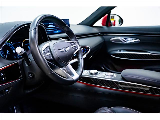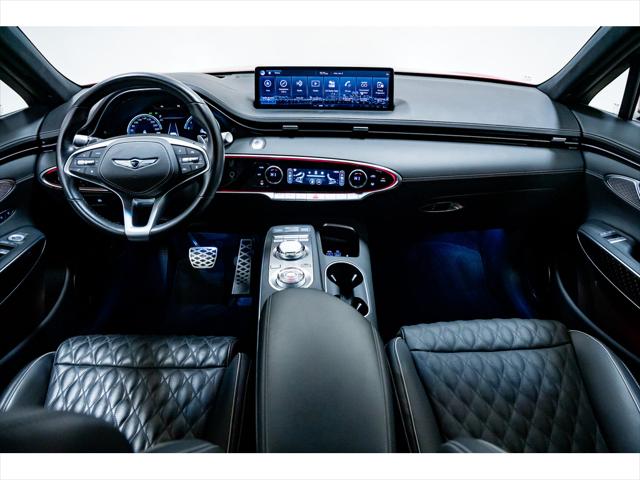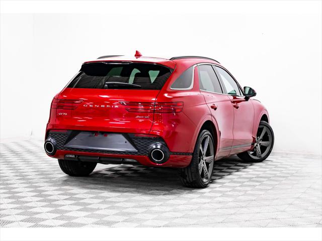 GENESIS GV70 SPORT PLUS 3.5T 2025 [] Moteur V6 biturbo 3 5 L [] Transmission intégrale intelligente [] Boîte automatique à 8 rapports [] Suspension adaptative électronique [] Différentiel arrière à glissement limité [] Jantes sport exclusives de 21 po [] Freins haute performance Brembo [] Direction assistée variable [] Toit ouvrant panoramique [] Sièges sport en cuir Nappa avec surpiqûres [] Sièges avant chauffants et ventilés [] Volant chauffant [] Affichage tête haute [] Écran multimédia large avec navigation intégrée [] Système audio haut de gamme Lexicon [] Caméras panoramiques 360° [] Aides à la conduite avancées (freinage durgence maintien de voie régulateur adaptatif) Dès les premiers instants ce VUS de luxe impressionne par son équilibre exceptionnel entre performances sportives raffinement et technologies de pointe. Pensé pour les conducteurs exigeants il met de lavant une motorisation puissante combinée à un châssis rigoureusement calibré offrant une conduite à la fois dynamique précise et confortable en toutes circonstances. Le moteur V6 biturbo de 3 5 litres développe des accélérations franches et une réserve de puissance remarquable parfaitement exploitée par la transmission intégrale intelligente. La suspension adaptative et le différentiel arrière à glissement limité assurent une tenue de route exemplaire que ce soit sur autoroute ou lors dune conduite plus engagée. Les freins Brembo renforcent la confiance du conducteur grâce à une puissance de freinage constante et maîtrisée. À lintérieur lhabitacle se distingue par une qualité de finition irréprochable. Les matériaux haut de gamme les sièges sport en cuir Nappa et lergonomie soignée créent une atmosphère luxueuse et accueillante. Les sièges chauffants et ventilés le volant chauffant et le toit panoramique contribuent à un confort optimal peu importe la saison. Linsonorisation poussée permet de profiter pleinement du système audio Lexicon reconnu pour sa clarté et sa profondeur sonore. La technologie occupe également une place centrale. Lécran multimédia avec navigation intégrée laffichage tête haute et les caméras 360° facilitent chaque déplacement. Les nombreux systèmes daide à la conduite renforcent la sécurité et réduisent la fatigue lors des longs trajets tout en préservant le plaisir de conduire. Ce modèle sadresse à ceux qui recherchent un VUS de luxe sportif sans compromis capable doffrir des performances élevées tout en maintenant un niveau de confort et de sophistication exemplaire. Venez en faire lessai chez Brossard Hyundai et découvrir tout ce quil a à offrir. Veuillez toujours vérifier lexactitude des équipements auprès dun représentant chez Brossard Hyundai. GENESIS GV70 SPORT PLUS 3.5T 2025 [] 3.5L twin-turbo V6 engine [] Intelligent all-wheel drive [] 8-speed automatic transmission [] Adaptive electronic suspension [] Limited-slip rear differential [] Exclusive 21-inch sport wheels [] Brembo high-performance brakes [] Variable-ratio power steering [] Panoramic sunroof [] Nappa leather sport seats with contrast stitching [] Heated and ventilated front seats [] Heated steering wheel [] Head-up display [] Large infotainment screen with integrated navigation [] Premium Lexicon sound system [] 360-degree surround-view cameras [] Advanced driver-assistance systems E From the very first moments behind the wheel this luxury SUV stands out for its exceptional balance of performance refinement and advanced technology. Designed for drivers who demand more it delivers a powerful drivetrain combined with a finely tuned chassis resulting in a driving experience that is both engaging and reassuring in every situation. The 3.5-liter twin-turbo V6 engine provides strong confident acceleration and impressive power delivery seamlessly managed by an intelligent all-wheel-drive system. Adaptive suspension and a limited-slip rear differential enhance handling precision and stability whether cruising on the highway or enjoying a more spirited drive. Brembo high-performance brakes inspire confidence with consistent controlled stopping power. Inside the cabin reflects meticulous attention to detail and premium craftsmanship. High-quality materials Nappa leather sport seats and thoughtful ergonomics create an environment that feels both luxurious and driver-focused. Heated and ventilated seats a heated steering wheel and a panoramic sunroof ensure comfort throughout the year. Excellent sound insulation allows occupants to fully enjoy the Lexicon premium audio system known for its rich and immersive sound quality. Technology plays a central role in enhancing both convenience and safety. The large infotainment display with integrated navigation head-up display and 360-degree cameras simplify every maneuver. A comprehensive suite of advanced driver-assistance features helps reduce stress on longer drives while maintaining a strong sense of driver involvement. This vehicle is ideal for those seeking a sport-oriented luxury SUV that makes no compromisesoffering exhilarating performance sophisticated comfort and cutting-edge technology in one cohesive package. We invite you to experience it for yourself with a test drive at Brossard Hyundai. Please always verify equipment accuracy with a representative at Brossard Hyundai. *Concessionnaire Hyundai de premier rang dans la région de Montréal *Fondé en 1997 et en croissance continue depuis. *Service à la clientèle de qualité offrant réparation et entretien. *Inventaire complet de véhicules neufs et usagés. *Valeur des véhicules d'échange attrayante. *Facilité de financement grâce au service des finances. *Service après-vente comprenant pièces et réparation. *Dessert une large région incluant Brossard La Prairie Montréal etc. *Personnel dévoué et techniciens chevronnés pour une expérience d'achat agréable et avantageuse. *Le présent site utilise un générateur d'équipements car