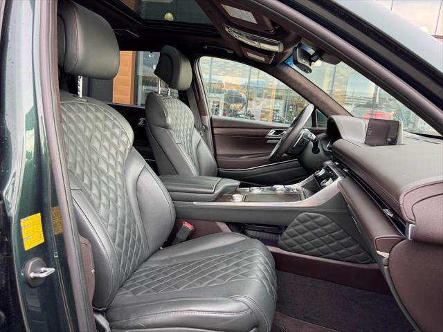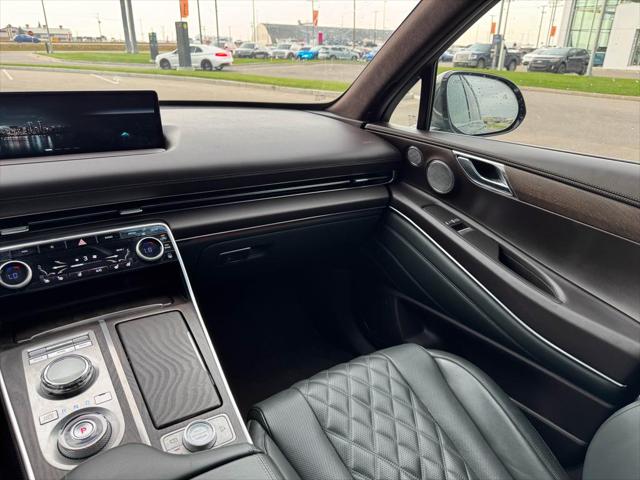 Our GV80's trim level is 3.5T Prestige. This all-wheel drive Genesis GV80 3.5T Advanced comes very well equipped with unique aluminum wheels heated and cooled Nappa leather quilted seats a heated leather steering wheel a large power sunroof wireless device charging power driver and passenger seats distance pacing cruise control and separate rear HVAC controls. It also includes a head-up display unit a 360 surround view camera proximity keyless entry with a useful power rear liftgate front and rear parking sensors blind spot detection with lane keep assist forward collision avoidance and genuine wood trim. This amazing GV80 also has road active noise cancellation power-folding 3rd row seats and a massive 14.5 inch HD touchscreen with integrated navigation Android Auto Apple CarPlay real-time traffic updates and a Lexicon premium audio system plus so much more. This vehicle has been upgraded with the following features: Head Up Display Leather Seats Cooled Seats Sunroof Power Liftgate Wireless Charging Heated Steering Wheel.