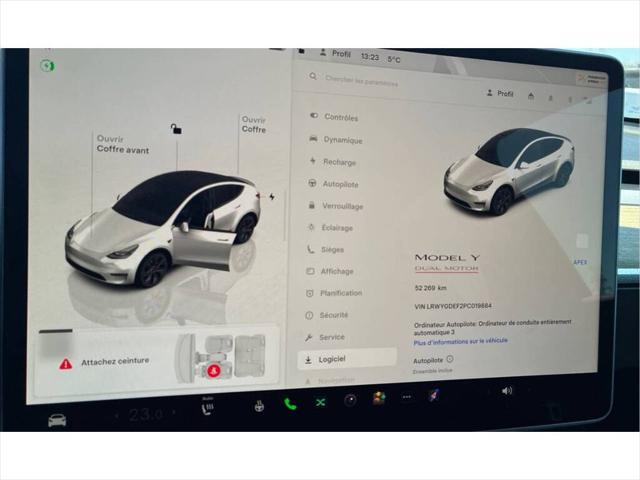 TESLA MODEL Y PERFORMANCE 2023 Transmission intégrale à double moteur Accélération ultra-rapide (0-100 km/h en ~3 7 s) Autonomie électrique élevée Jantes en alliage 21 pouces Uberturbine Freins haute performance Suspension sport abaissée Toit panoramique en verre Écran tactile central 15 pouces Système audio premium Navigation avec planification intelligente Sièges avant chauffants Volant chauffant Climatisation automatique Caméras 360° avec mode Sentinelle Accès sans clé et démarrage sans bouton Mises à jour logicielles à distance (OTA) Interface utilisateur minimaliste et intuitive Compatibilité application mobile Tesla Capacité de recharge rapide (Superchargeur) Assistance à la conduite avancée Offrant des performances électrisantes et une accélération instantanée ce VUS redéfinit complètement lexpérience de conduite moderne. Le TESLA MODEL Y PERFORMANCE 2023 se distingue par sa combinaison impressionnante de puissance de technologie et defficacité énergétique faisant de lui un choix incontournable pour les conducteurs exigeants. Grâce à sa transmission intégrale à double moteur il assure une motricité exceptionnelle en toutes saisons particulièrement adaptée aux conditions routières variées. Son centre de gravité bas dû à la position de la batterie améliore considérablement la tenue de route et la stabilité procurant une conduite à la fois dynamique et sécurisante. Lintérieur spacieux et épuré met de lavant une technologie de pointe avec un écran tactile central qui contrôle pratiquement toutes les fonctions du véhicule. Linterface est fluide intuitive et constamment améliorée via des mises à jour logicielles à distance permettant au véhicule dévoluer dans le temps. En matière de sécurité il est équipé de multiples systèmes dassistance à la conduite et de caméras offrant une vision complète de lenvironnement. Le mode Sentinelle ajoute une couche supplémentaire de protection lorsque le véhicule est stationné. Son autonomie électrique généreuse et sa compatibilité avec un vaste réseau de recharge rapide permettent de voyager en toute tranquillité sans compromis sur la performance. Labsence de moteur thermique réduit également les coûts dentretien tout en offrant une conduite silencieuse et respectueuse de lenvironnement. Venez lessayer dès aujourdhui chez Brossard Hyundai et toujours vérifier lexactitude des équipements auprès du représentant chez Brossard Hyundai. TESLA MODEL Y PERFORMANCE 2023 Dual motor all-wheel drive Ultra-fast acceleration (0-100 km/h in ~3.7 seconds) Long electric driving range 21-inch Uberturbine alloy wheels High-performance brakes Lowered sport suspension Panoramic glass roof 15-inch central touchscreen Premium audio system Navigation with smart route planning Heated front seats Heated steering wheel Automatic climate control 360° camera system with Sentry Mode Keyless entry and push-button start Over-the-air software updates (OTA) Minimalist and intuitive user interface Tesla mobile app connectivity Fast charging capability (Supercharger network) Advanced driver assistance features Delivering thrilling performance and instant acceleration this SUV completely redefines the modern driving experience. The TESLA MODEL Y PERFORMANCE 2023 stands out with its impressive blend of power cutting-edge technology and efficiency making it an exceptional choice for demanding drivers. Its dual motor all-wheel drive system ensures outstanding traction in all conditions perfectly suited for varying road environments. The low center of gravity thanks to the battery placement significantly enhances handling and stability resulting in a drive that is both sporty and confidence-inspiring. Inside the spacious and minimalist cabin showcases advanced technology through a large central touchscreen that controls nearly every function of the vehicle. The interface is smooth intuitive and continuously improved via over-the-air updates allowing the vehicle to evolve over time. In terms of safety it features multiple driver assistance systems and a comprehensive camera setup that provides full awareness of the surroundings. Sentry Mode adds an extra layer of protection when the vehicle is parked. Its generous electric range and access to a widespread fast-charging network allow for worry-free travel without compromising performance. The absence of a traditional combustion engine also reduces maintenance costs while delivering a quiet and environmentally friendly driving experience. Come test drive it today at Brossard Hyundai and always verify equipment accuracy with a representative at Brossard Hyundai. *Concessionnaire Hyundai de premier rang dans la région de Montréal *Fondé en 1997 et en croissance continue depuis. *Service à la clientèle de qualité offrant réparation et entretien. *Inventaire complet de véhicules neufs et usagés. *Valeur des véhicules d'échange attrayante. *Facilité de financement grâce au service des finances. *Service après-vente comprenant pièces et réparation. *Dessert une large région incluant Brossard La Prairie Montréal etc. *Personnel dévoué et techniciens chevronnés pour une expérience d'achat agréable et avantageuse. *Le présent site utilise un générateur d'équipements caractéristiques et spécifications techniques automatisée basée sur des listes fournies par différentes sources publiques pour ce type de véhicule. Ces informations sont à titre indicatif seulement et ne doivent sous aucun prétexte être considérées comme étant la fiche technique officielle du véhicule concerné dans cette annonce. Veuillez confirmer la liste des équipements options et inclusions avec le concessionnaire vendeur car celles-ci peuvent différer. *This site uses an automated generator of equipment characteristics and technical specifications based on lists provided by various public sources for this type of vehicle. This information is for guidance onl