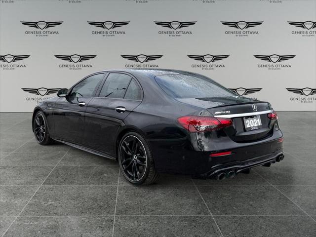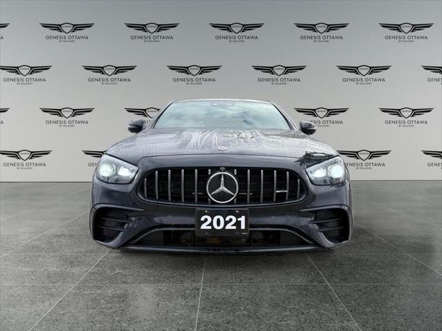 The 2021 Mercedes-Benz E-Class AMG E 53 4MATIC+ Sedan with its black exterior and sophisticated all-wheel drive offers a dynamic driving experience that's both powerful and poised. Designed for those who appreciate performance and luxury this sedan delivers a thrilling ride powered by a 3.0L 6-cylinder engine putting 429 horses to the wheel at 6100 RPM. The black exterior exudes elegance while the interior dazzles with premium materials and high-end finishes. Enjoy the refinement of leatherette door trim inserts and a leather/metal-look gear shifter complemented by heated front seats and a heated steering wheel to keep you comfortable during those cooler Canadian months. The sunroof lets in natural light enhancing the ambiance of the cabin fitted with chrome interior accents. Technology and safety take center stage with features such as the navigation system backup camera automatic parking and smart device integration. Stay connected with the built-in Bluetooth satellite radio and Wi-Fi hotspot. Peace of mind is paramount thanks to advanced systems like brake assist lane assist and parking sensors. Additional comforts include power seats power windows and a keyless entry system for maximum convenience. This remarkable vehicle is suited for those who demand excellence and style in their everyday drive. Whether it's the commute or a weekend getaway the AMG E 53 is ready to impress. Contact the dealership today to learn more about how you can make this exceptional sedan yours.