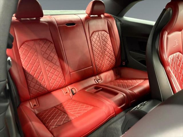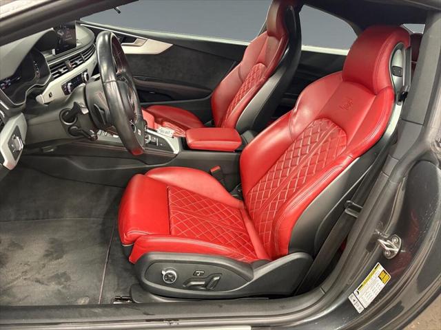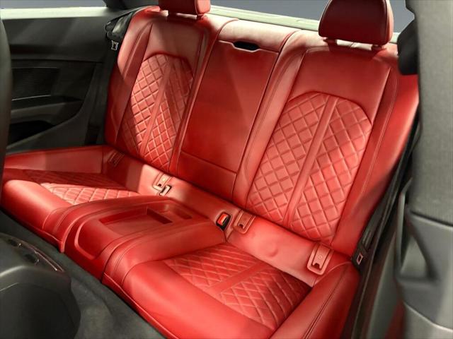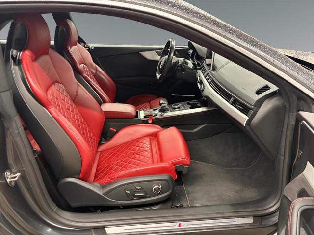The 2018 Audi S5 Coupe Technik in striking black is an all-wheel drive marvel that blends powerful handling with sophisticated elegance. Sporting a robust 3.0L 6-cylinder engine this vehicle packs a punch with 354 horsepower at your disposal enhancing every ride with thrilling performance. Externally this sleek coupe's black exterior is perfectly complemented by stylish alloy wheels and a refined design that commands attention. Inside the luxurious leather seating with a matching black interior exudes an air of comfort and exclusivity. A sunroof/moonroof enhances the sense of space and light making every drive feel extraordinary. Stay connected and confident with state-of-the-art technology that includes a high-definition navigation system Bluetooth connectivity and smart device integration. Safety is prioritized with advanced features such as a backup camera parking sensors lane assist and brake assist which ensure that you remain secure on the road. Experience the convenience of keyless entry power seats and a sophisticated tiptronic automatic transmission that provides seamless performance. This Audi S5 is tailor-made for discerning drivers who value precision engineering luxurious touches and cutting-edge technology. Contact our dealership today for more information and take a step closer to owning this remarkable vehicle.